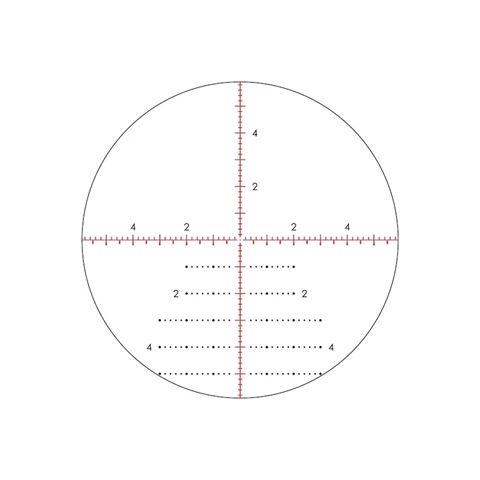- EBR-7D (MRAD) dradenkruis in First Focal Plane voor nauwkeurige afstandsmeting en holdovers bij elke vergroting.